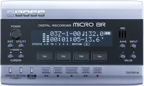 這是一款非常小巧的掌上錄音機(jī)。只比iPod大一些,小巧而功能強(qiáng)大的Micro BR是音樂家夢(mèng)寐以求的產(chǎn)品。Micro BR可以同時(shí)回放四個(gè)音軌(32個(gè)虛擬軌),一個(gè)SD卡插槽,內(nèi)置綜合效果器,內(nèi)置節(jié)奏模板,一個(gè)校音表,兼容MP3,USB等。所有吉他盒或雙肩背包都可以裝下。